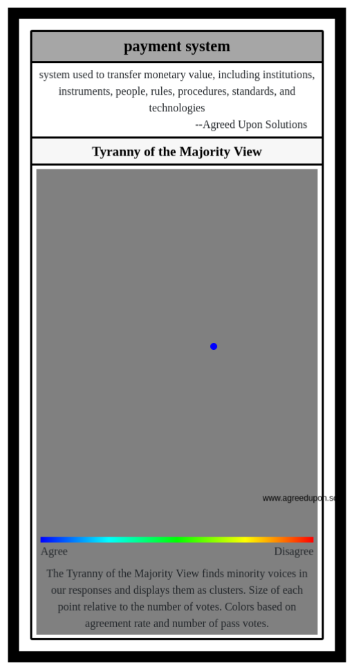 The Tyranny of the Majority View finds minority voices in our responses and displays them as clusters. Size of each point relative to the number of votes. Colors based on agreement rate and number of pass votes.