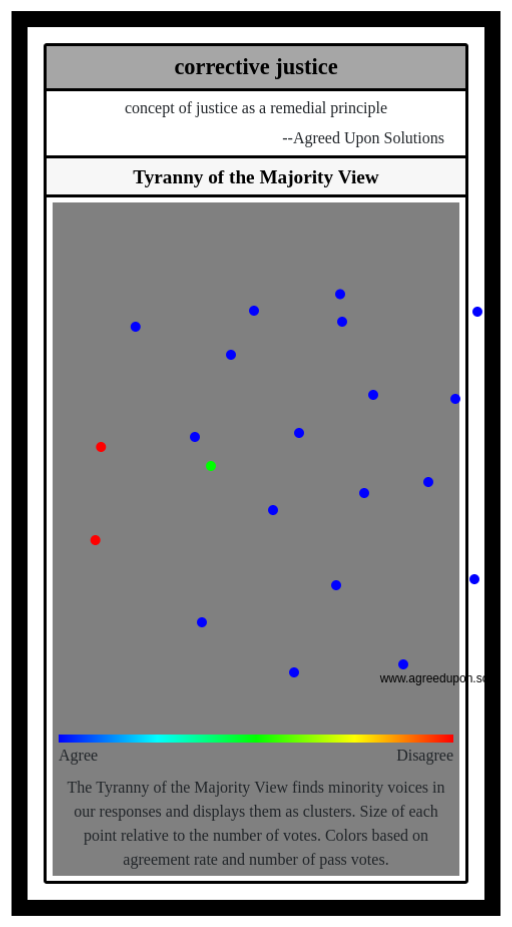The Tyranny of the Majority View finds minority voices in our responses and displays them as clusters. Size of each point relative to the number of votes. Colors based on agreement rate and number of pass votes.