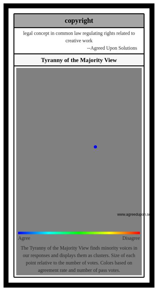 The Tyranny of the Majority View finds minority voices in our responses and displays them as clusters. Size of each point relative to the number of votes. Colors based on agreement rate and number of pass votes.