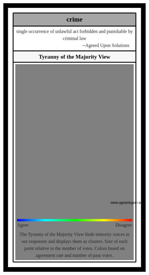 The Tyranny of the Majority View finds minority voices in our responses and displays them as clusters. Size of each point relative to the number of votes. Colors based on agreement rate and number of pass votes.