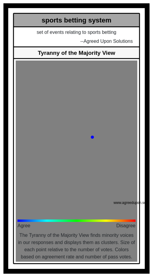 The Tyranny of the Majority View finds minority voices in our responses and displays them as clusters. Size of each point relative to the number of votes. Colors based on agreement rate and number of pass votes.